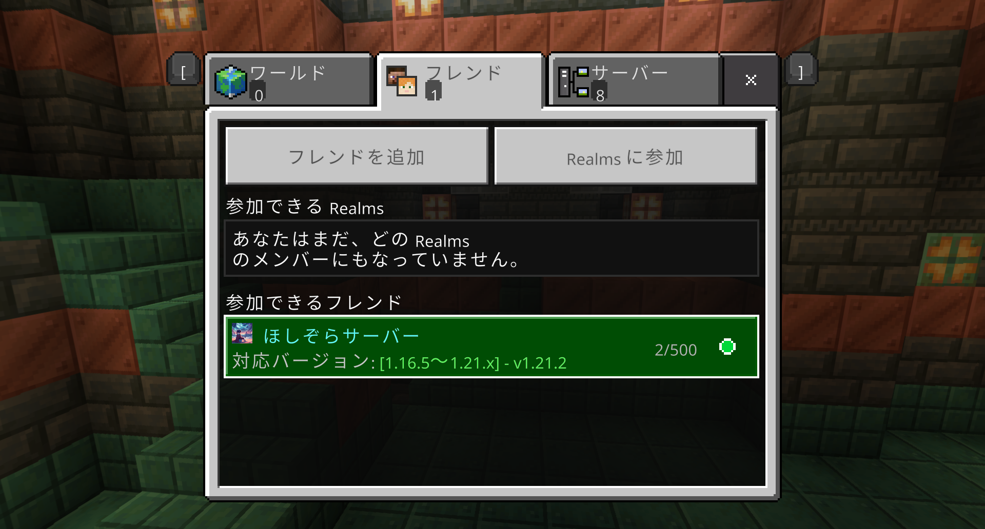 5.『フレンド』 欄の 『ほしぞらサーバー』 をクリックし,サーバーに参加します。